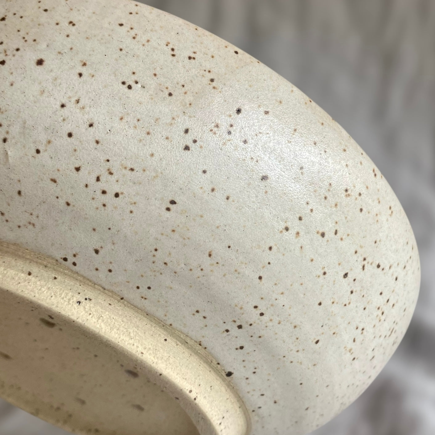 Made from speckled stoneware with a creamy white glaze. 5.5x16cm