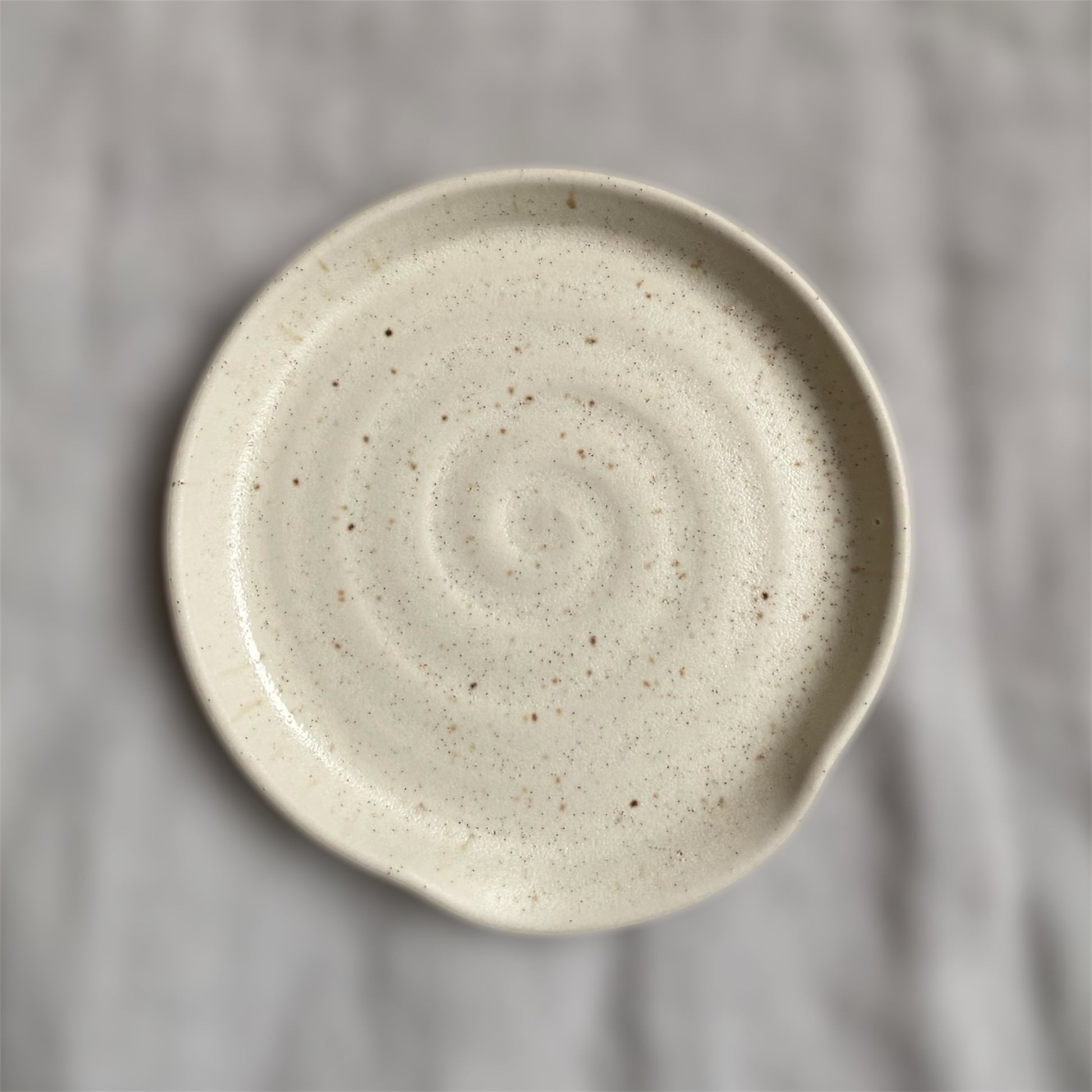Made from white stoneware with a soft off-white speckled glaze. Dimensions: 1.5x10cm